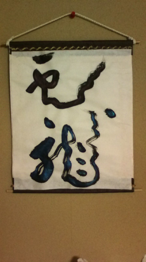 雲龍は何も考えずに一発で書いて、後から掛け軸みたらサイズが随分違って結局無様な貼り方になりました;;